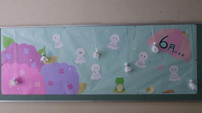 校舎1階には毎月の行事予定の掲示物が飾られています。