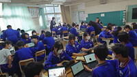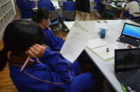 次に校外学習で行うレクリエーションのアイディアを考えました。校外学習のテーマの一つは皆の仲を深めることです。学年全体が楽しめる内容をタブレットを活用しながら考えていきました。生徒たちは皆が楽しめることをとても真剣に考えていました。