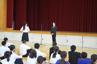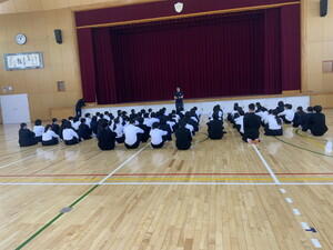 学年朝会では5月9日から行われる「第13回インターミディエット全日本リトルリーグ野球選手権大会」に参加する生徒を応援するために壮行会を行いました。