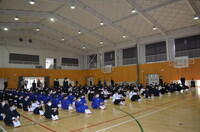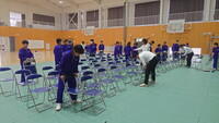 4時間目に1年生が体育館でPTA総会の会場設営を行いました。