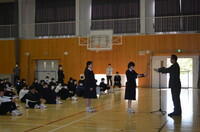 本日、全校朝会で、19日に行われた市春季大会の表彰を行いました。