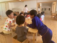 午後の活動は、集団行動コンテストをしました。集団行動コンテストでは、大きな声を出したり動きを揃えたりとクラスが団結して取り組むことができました。
