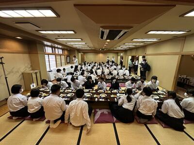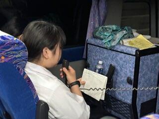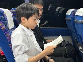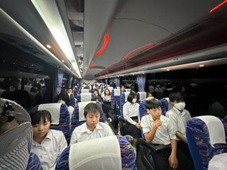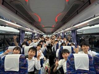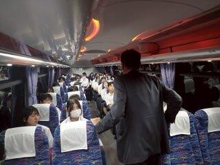 帰りが遅くなったため、バス車内で修学旅行の解散式をおこないます。山崎に到着すれば、すぐに帰宅します。
