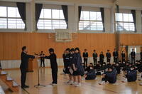 その後、全校集会を行い、この土日で行われた大会での表彰伝達を行いました。